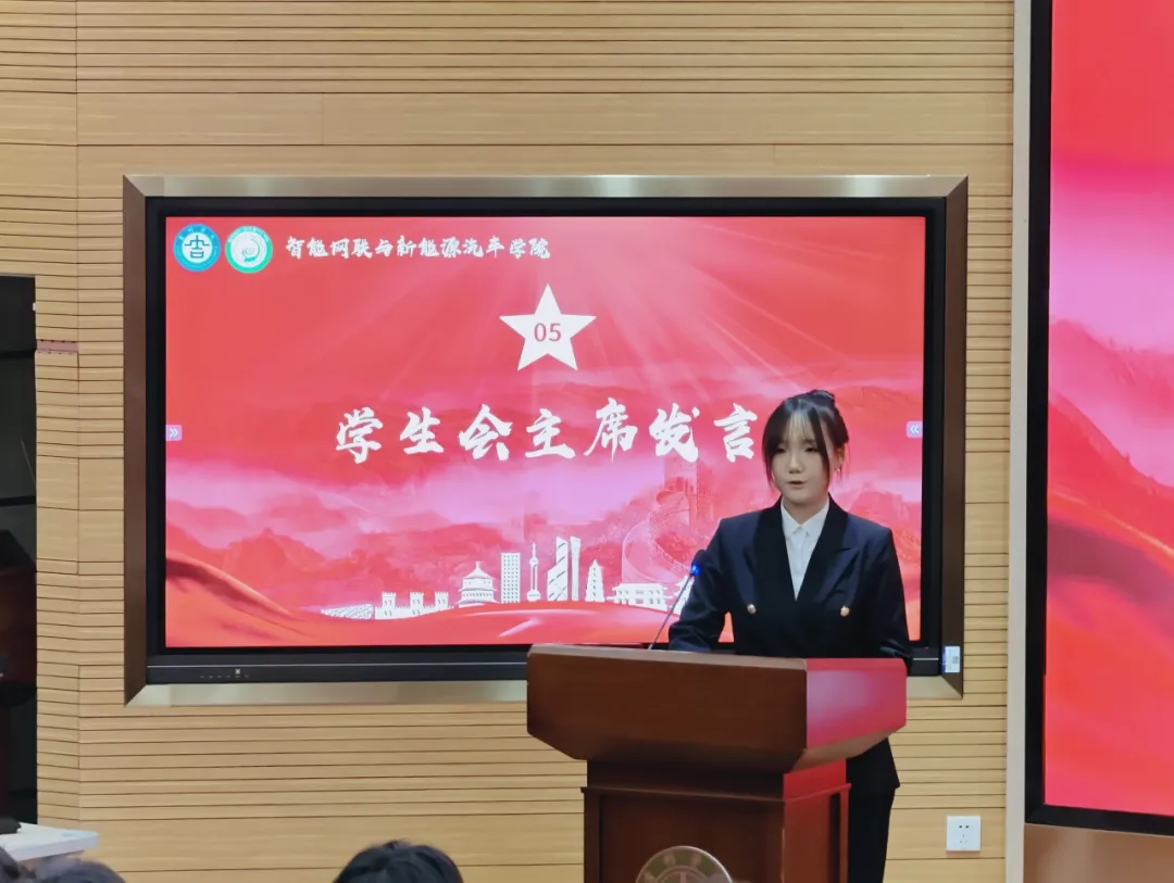 学院党总支副书记高一钧老师在讲话中指出,团学组织是学院育人体系的关键组成部分。他对同学们提出三点期望:一是坚定理想信念,争做新时代的追梦者;二是勤学善思笃行,勇当专业领域的排头兵;三是勇于实践创新,敢为产业发展的先行者。他特别强调,作为智能网联与新能源汽车领域的未来建设者,更要立足专业特色,将个人成长轨迹融入行业发展大势。