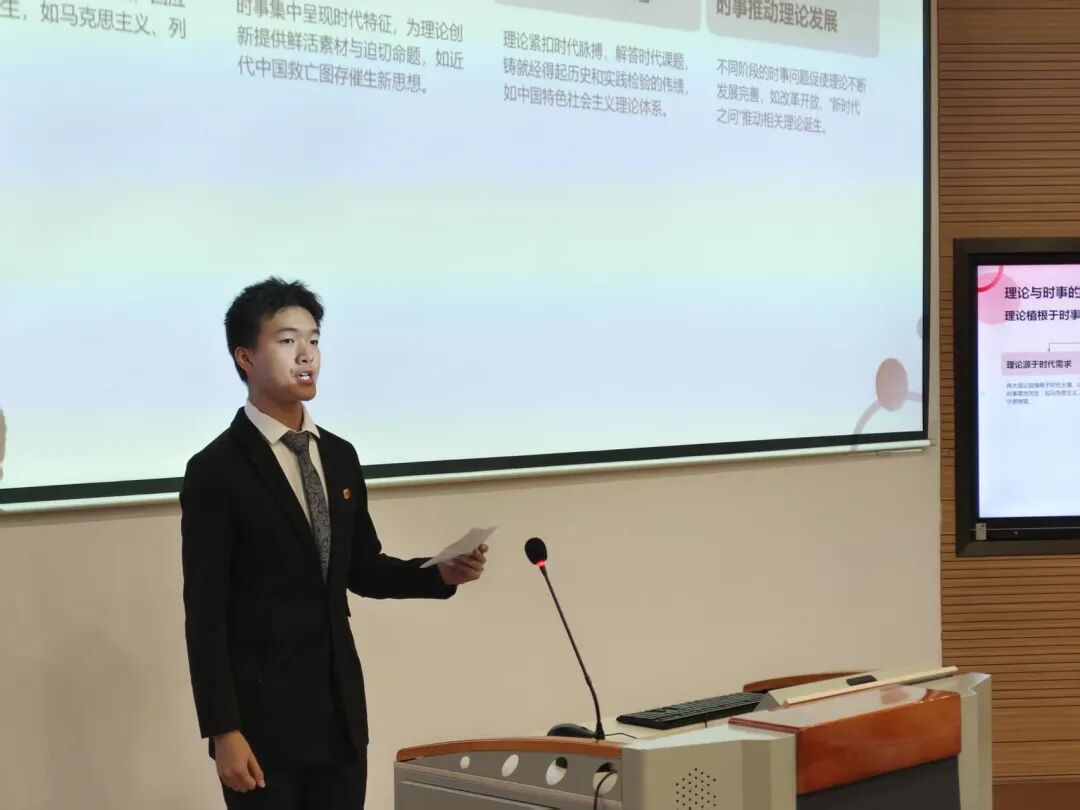 更有小组以“中国现代化之路的历史脉络与青春担当”破题,成员们手持老照片与新时代影像对比讲解:“从建国初期的‘两弹一星’突破,到如今‘嫦娥探月’‘高铁出海’,中国现代化的每一步,都踩着先辈拼搏的脚印。”他们结合专业领域补充:“作为工科生,我们要攻克技术卡脖子难题;作为文科生,我们要讲好中国现代化故事——这就是我们这代人的使命。”从历史进程的梳理到青年责任的拆解,让中国现代化之路成为看得见、可参与的行动方向。
