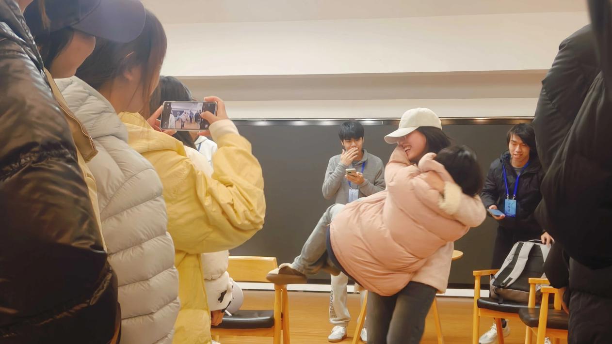“画画接龙”与“我画你猜”环节将活动推向高潮。前者中,信息通过后背传递的方式层层递进,考验着大家的理解与表达能力;后者里,参赛同学用生动的表情和动作演绎各类主题,搭档则凝神思索、快速抢答,三分钟内的精彩互动让现场掌声不断。每一个游戏都让同学们在互动中学会沟通,在协作中收获信任。