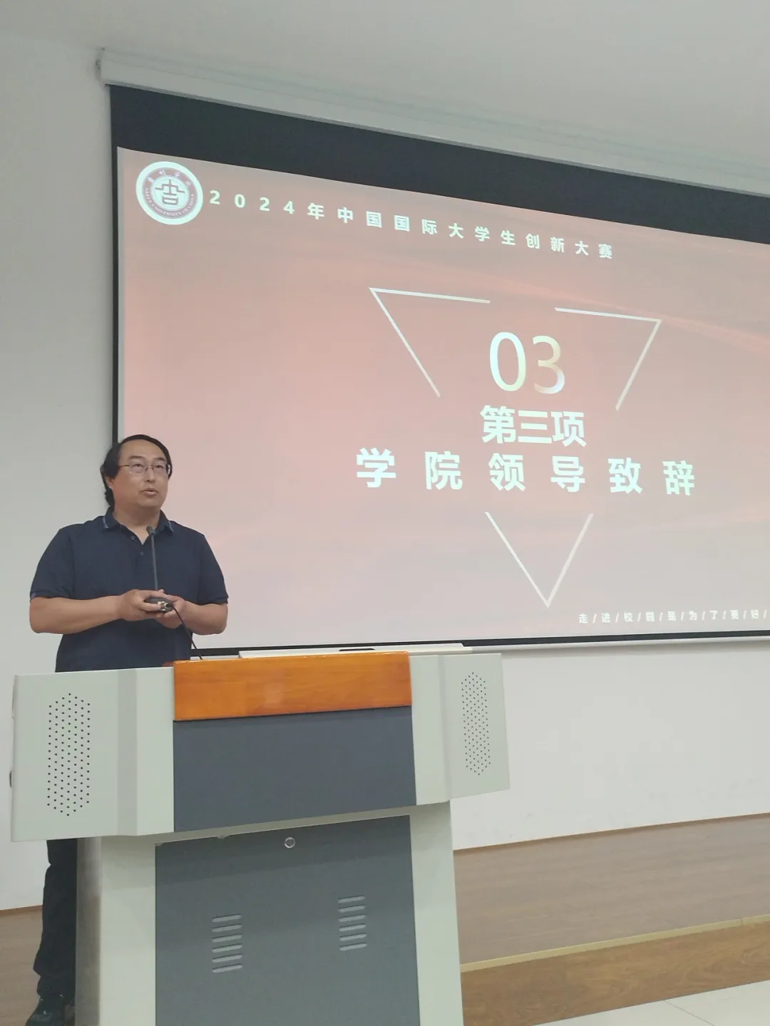 智能网联与新能源汽车学院院长倪雨首先对同学们积极参赛的热情表示肯定,其次建议同学们将这次比赛当成一个展示自己创业项目的绝佳机会,不仅要展现项目的创新性和可行性,更要展现团队的凝聚力和执行力。最后还鼓励同学们要培养自己的创新意识和实干精神。
